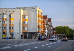 Firkantet højhus og indkøbscenter