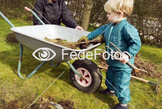 Barn hjælper til og arbejder i have. Mos i trillebør. Model released. Danmark. 1. april 2017. Nøgleord: Havebrug luger fritid fritidsaktivitet forårsvejr i haven fritidssyssel fritidssysler syssel sysler arbejdsom arbejdsomhed slider om foråret spade skovl græs græsplæne graver termotøj overtøj dreng haveudstyr haveredskab redskab redskaber snavset snavs beskidt beskidte snavsede fingre lille små småbarn småbørn giver en hjælpende hånd at give genrefoto genre-foto hjælpsom artig illustrationsfoto illustrationsbillede illustrativt gravning af havepleje