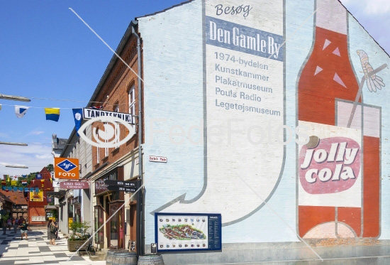 Den gamle by i Aarhus. 1974: Gågade og gammeldags gavlmaleri med Jolly Cola. Aarhus, Danmark. 19. juli 2025. Nøgleord: museum bydel seværdighed huse i gammel bydel hus og byhus på gade bymiljøer ejendom bymiljø turistattraktion turistattraktioner attraktion attraktioner gammelt turistmål bygning rejsemål på gaden turist-mål turistdestination turist-destination turistdestinationer turist-destinationer dansk feriemål historiske bymidte bymidten af historisk byhistorie genrefoto genre-foto illustrationsfoto illustrationsbillede illustrativt århus gavlmaleri kulturarv gavlmalerier murmaleri maleri vægmaleri på mur gamle dage gademaleri gavlreklame husgavlreklame husgavlsreklame husgavlmaleri husgavlsmaleri husgavl gavl kunstværk på væg malerkunst tegning genopbygget genskabt kopi af konstrueret rekonstrueret frilandsmuseum provinsby halvfjerdserne 70'erne 70-erne 70erne 1970'erne 1970-erne 1970erne seventies nineteen-seventies 1970s '70s 1970-tallet fra nostalgi markedsføring oplevelsescenter kulturtilbud indkøbsstrøg handelsgade