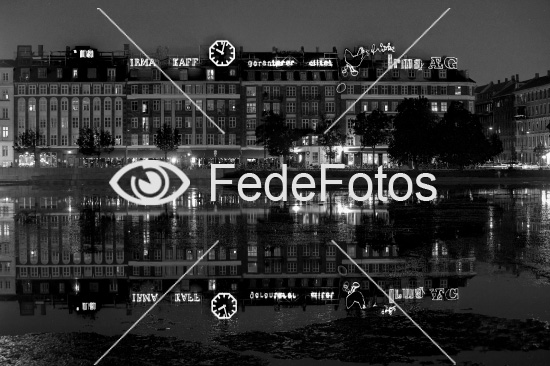 Lysreklamer ved Søerne. København, Danmark. 6. september 2025. Nøgleord: spejlbillede og reklamer spejling af i ved markedsføring af fx Irma via Irmahønen lysreklame neon neonreklame neonreklamer neonlys neonlysreklame neonlysreklamer neonskilt neonskilte neonskiltene lysskilt skilt stemningsbillede vartegn vandspejl vandspejling tradition søbred by night om natten copenhagen genskin farverig skiltning logo firmalogo virksomhedslogo firma virksomhed firmanavn virksomhedsnavn bygning nattefoto by oplyst med lys på marketing om aftenen reklamekampagne kampagne virksomheder irmahøne Irma-hønen Irma-høne over københavns tage tekst for pangfarve pangfarver farverigt foran spraglet spraglede ved nattetid nattetide kulørte kulørt lokkemiddel til spejler sig i vandet farvemættet farvemættede nattestemning aftenstemning multifarvet mangefarvet genrefoto genre-foto illustrationsfoto illustrationsbillede illustrativt lysskilte reklameskilte reklameskilt vintage retro retroskilt retro-skilt lysende natbelysning refleksion genspejling storbylys reklamelys blikfang ikonisk farvestrålende sorthvid sort-hvid sort hvid mørkt